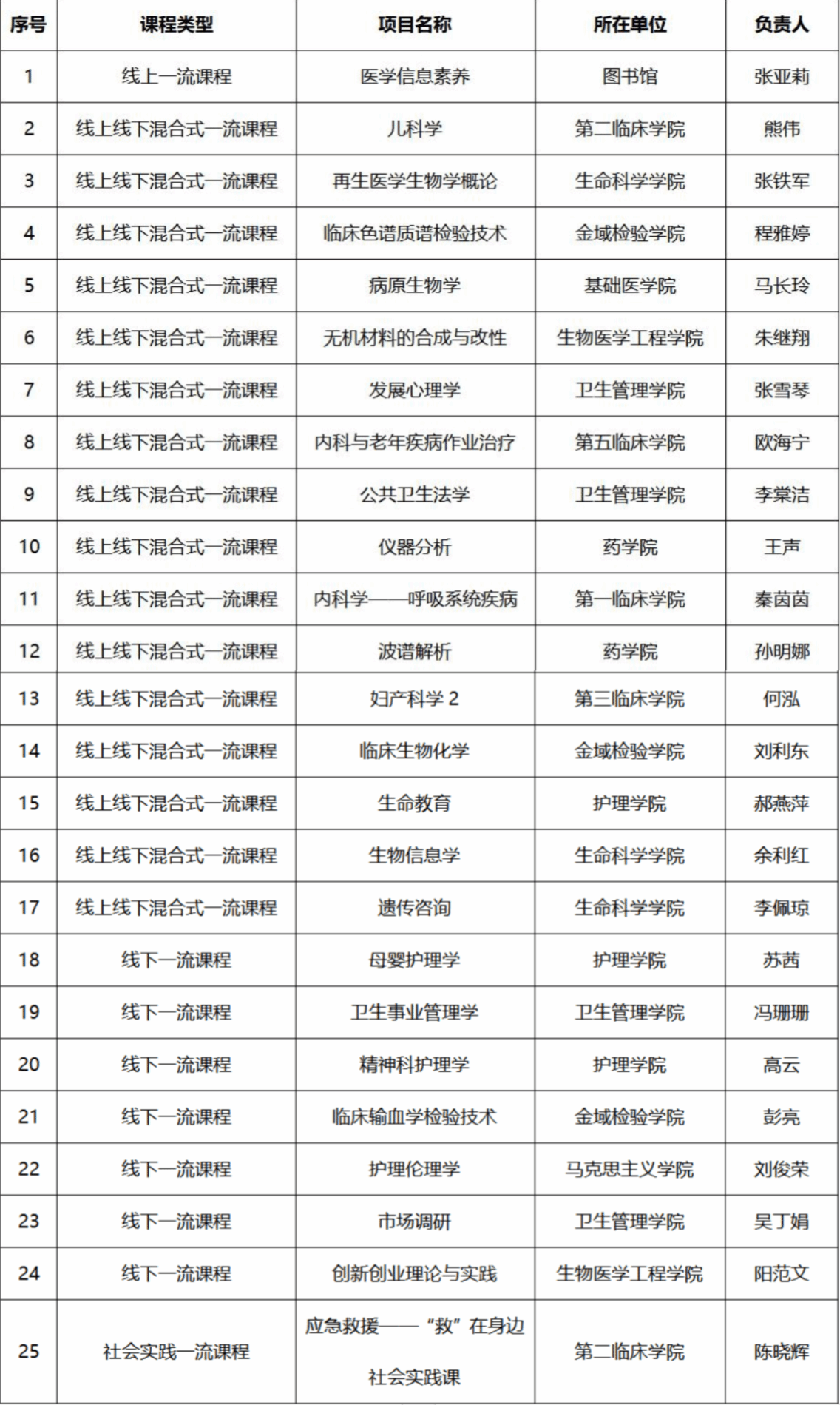本网讯 近日,广东省教育厅发布《广东省教育厅关于公布2023年度省级一流本科课程认定结果的通知》,公布了2023年度省级一流本科课程名单,广州医科大学共有25门课程入选。其中,线上一流课程1门、线上线下混合式一流课程16门、线下一流课程7门、社会实践一流课程1门。