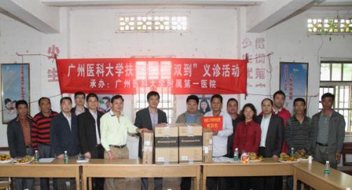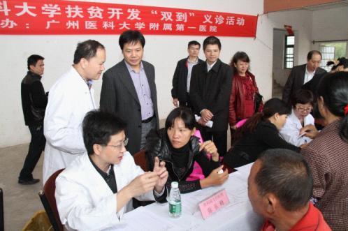 广医在线讯 11月19日至20日,广州医科大学校长王新华在党委副书记陈杰的陪同下,带领校工会副主席冯卫东,办公室主任苏广武,机关总支副书记李羽,附一院党委书记陈晓辉、副书记沈怡及义诊队医疗专家一行25人的工作队,驱车500多公里前往我校对口帮扶单位——雷州市南兴镇平兰村进行扶贫帮扶、慰问和义诊活动。