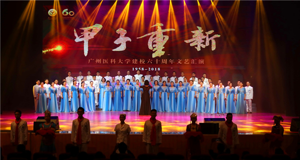 广医在线讯 11月10日下午,广州医科大学建校60周年文艺汇演《甲子重新》在番禺校区礼堂举行。学校领导、校友代表、师生代表、支持广医发展的各界代表等逾1600人观看了本次汇演。文艺汇演全程通过新媒体进行全球直播。