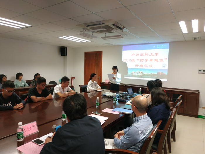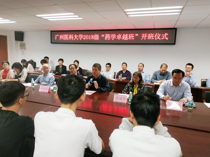 广医在线讯 2018级“药学卓越班”开班仪式于3月20日在番禺校区举行。学校纪委书记陈杰、相关职能部门负责人、药学院教师代表、2018级药学卓越班30名学生参加了开班仪式。