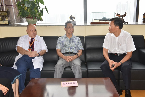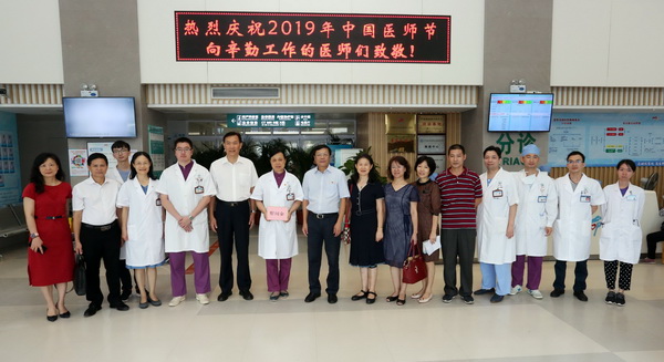 广医在线讯 8月19日是第二届“中国医师节”,值此之际,广州市总工会党组成员、派驻纪检监察组组长梁文政,市总工会巡视员程莉莉副主席、市总女职工部列雄红部长、生活部刘明强调研员,市教育局副巡视员、市教育工会徐文谦主席、吴英科长等一行走访了我校附属第一医院、附属第二医院,慰问医生代表,并向他们送去节日的祝福和问候。