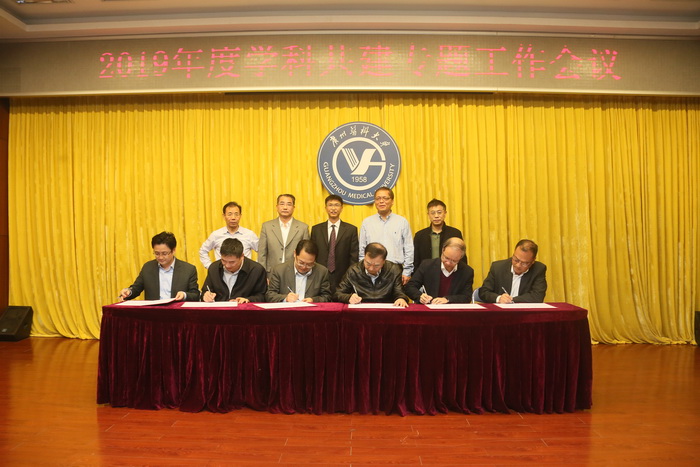 随后根据学校统一部署,校本部各学院分别与相关附属医院签订了基础-临床共建协议,共建相关学科及平台:基础医学院与附属第二医院共建免疫学、神经科学和血管医学学科及科研平台,与附属肿瘤医院共建蛋白质修饰与降解实验室及肿瘤学学科,与附属口腔医院共建口腔与生物医学工程学科及科研平台,与附属第三医院共建妇产科学及科研平台,与附属第六医院共建血管医学、神经科学和肿瘤学;药学院与附属第五医院共建临床医学与药学学科及科研平台;公共卫生学院与附属第一医院共建呼吸病学及科研平台;卫生管理学院与附属脑科医院共建精神卫生与心理学学科及科研平台;广医-广州生物院联合生科院与附属第三医院共建生殖医学及科研平台。各附属医院同时现场签订了首批8个临床-临床学科共建协议:妇产科学、泌尿外科学、神经病学、变态反应学、心血管病学、肿瘤学、康复医学、急诊医学。