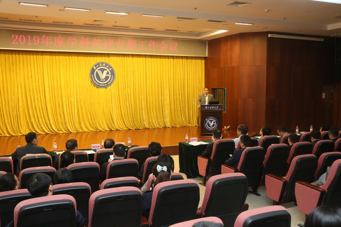 广医在线讯 12月25日上午,学校在番禺校区召开2019年度学科共建专题工作会议。学校领导陈晓辉副书记、刘金保副校长、罗健东副校长、胡丙杰副校长,相关职能部门负责人,各学院、各附属医院主要负责人、分管领导、相关科室负责人(学科带头人)、科研管理干部等120余人参会。罗健东副校长主持会议。