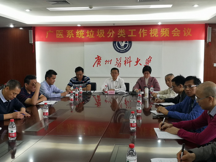 广医在线讯 为践行生态文明建设,落实习近平总书记关于垃圾分类工作的重要指示,贯彻省、市推进生活垃圾分类大会精神,后勤校产管理处于12月16日召开了广医系统垃圾分类工作视频会议。后勤校产管理处全体处领导、各科室负责人、膳食科和物业科骨干员工、两校区物业公司主要负责人在行政楼6楼视频会议室参加了会议,各直属附属医院相关部门负责人在医院视频会议室分会场参会。