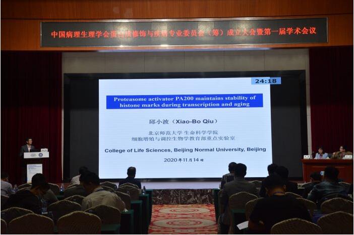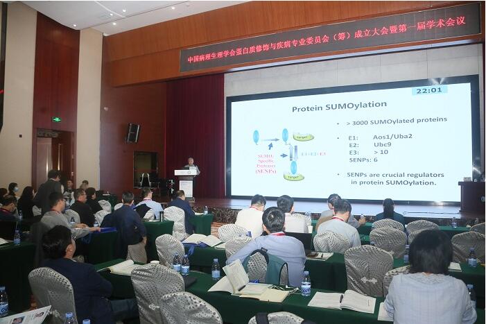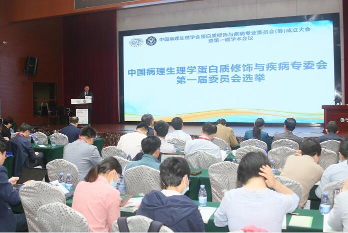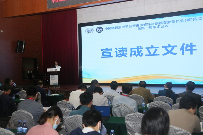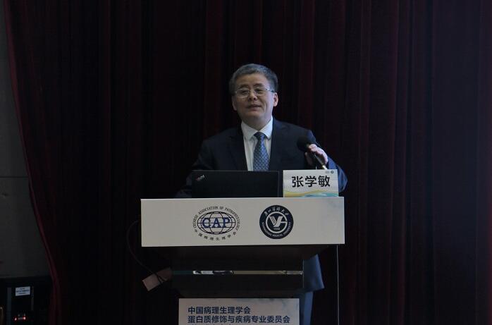 王建枝教授代表中国病理生理学会致辞,对专委会的成立表示祝贺,希望专委会在刘金保教授以及团队成员的带领下不断加强学术交流和学科融合,为研究人员搭建更好的交流平台,产出更多更好的学术成果,提升我国在蛋白质修饰、功能与疾病领域的研究水平。
