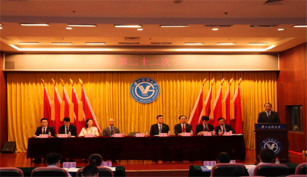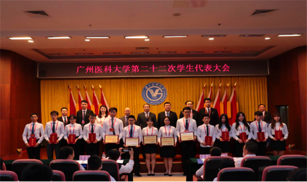 广医在线讯 11月15日,我校第二十二次学生代表大会在番禺校区召开,160名学生代表齐聚一堂共谋学生会发展新篇章。学校党委副书记陈晓辉、副校长赵醒村参加大会并颁奖,广州市学联执行主席林燕生同学致辞,学校党委学生工作部、学校团委负责人,有关学院学生管理负责老师、学生会秘书长近200人参加会议。会议由学校团委综合科科长、学校学生会秘书长秦凯老师主持。