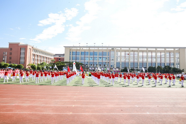 在师生运动会开幕式中,百名师生排舞表演《没有共产党就没有新中国》、《再唱山歌给党听》,用广医人抖擞的精神状态、优美的舞姿,向建党100周年献礼。