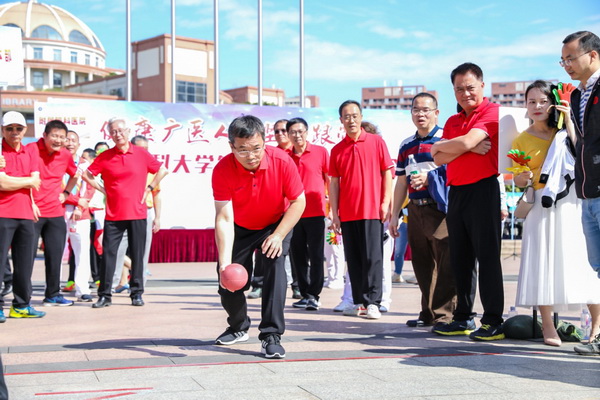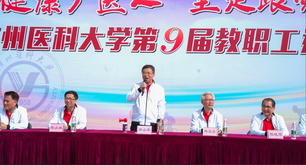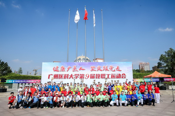 广医在线讯 11月18日上午,广州医科大学第9届教职工运动会在番禺校区与54届学生运动会同步举行。本届教职工运动会以“健康广医人,永远跟党走”为主题,以集体趣味比赛的形式,加强广医系统各单位的交流,提升教职工身心素质,为建设健康和谐广医搭建良好平台。