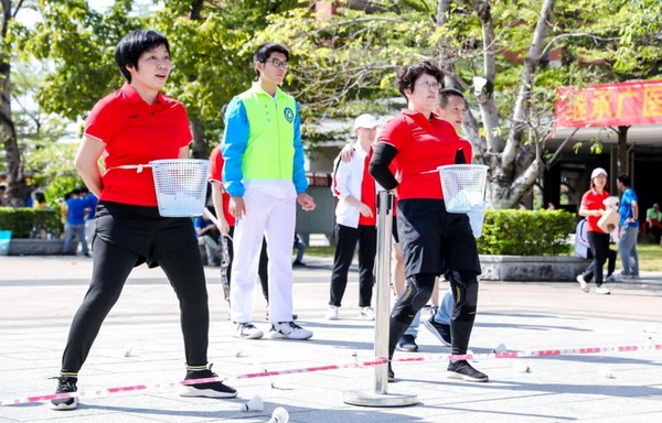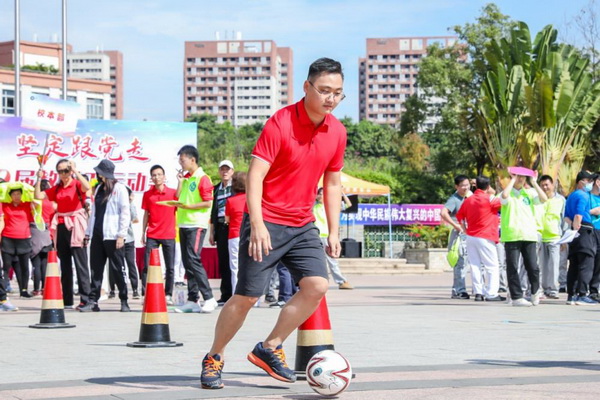 本次教职工集体趣味运动会共设置了5项比赛项目,分别为趣味保龄球赛、足球运球绕障碍接力赛、羽毛球接发球赛、“龙腾飞跃”比赛以及20*30米来回接力赛。平日安静的正门广场,当日热闹非凡,随处可见教职工运动健儿们矫健的身姿, 11支队伍积极拼搏,展现了广医人团结奋进的精神风貌。