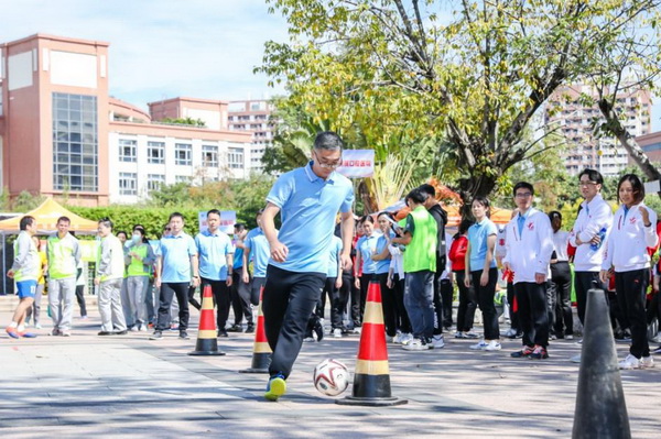学校领导出席教职工集体趣味运动比赛开始仪式并参加比赛