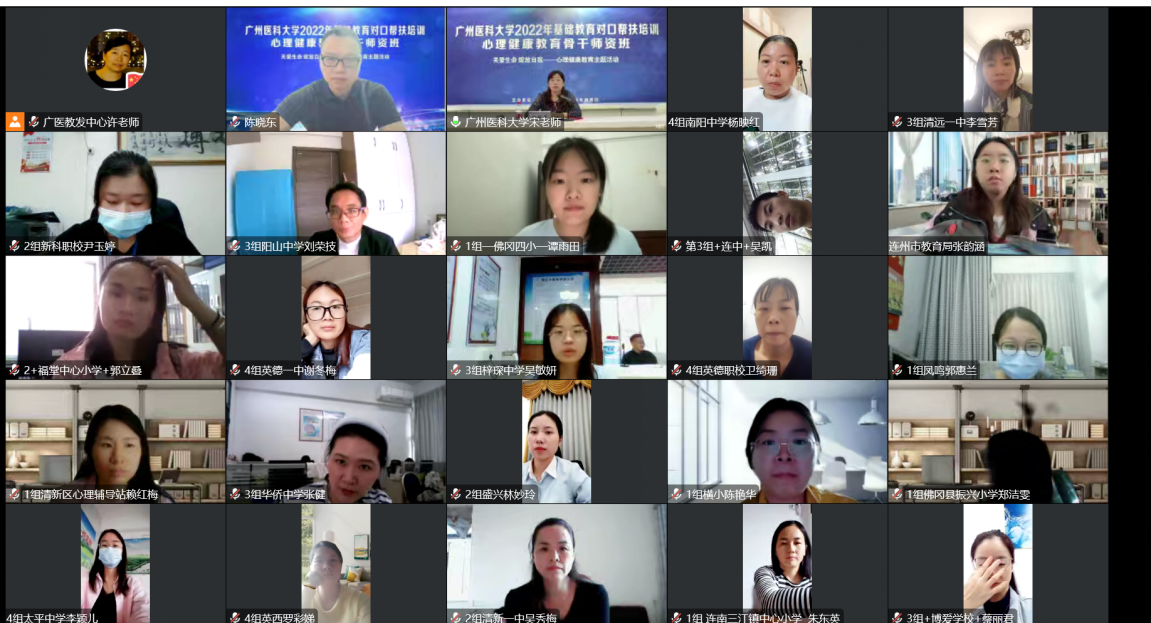 本网讯 11月21-23日,广州医科大学开展2022年基础教育对口帮扶培训——心理健康教育骨干师资班。清远市各中小学心理健康教育工作负责人共50人参加本次培训班。