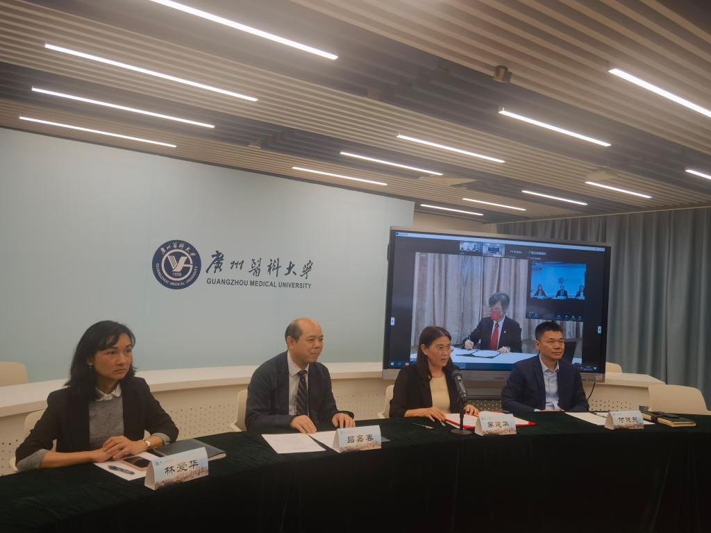 我校港澳台事务办公室主任吕嘉春,发展规划处处长付晓东,第五临床学院副院长秦大江,香港理工大学常务及学务副校长高级顾问陈正豪、内地发展处总监陆海天、医疗及社会科学院院长岑浩强、康复治疗科学系主任曾永康等见证签约仪式。