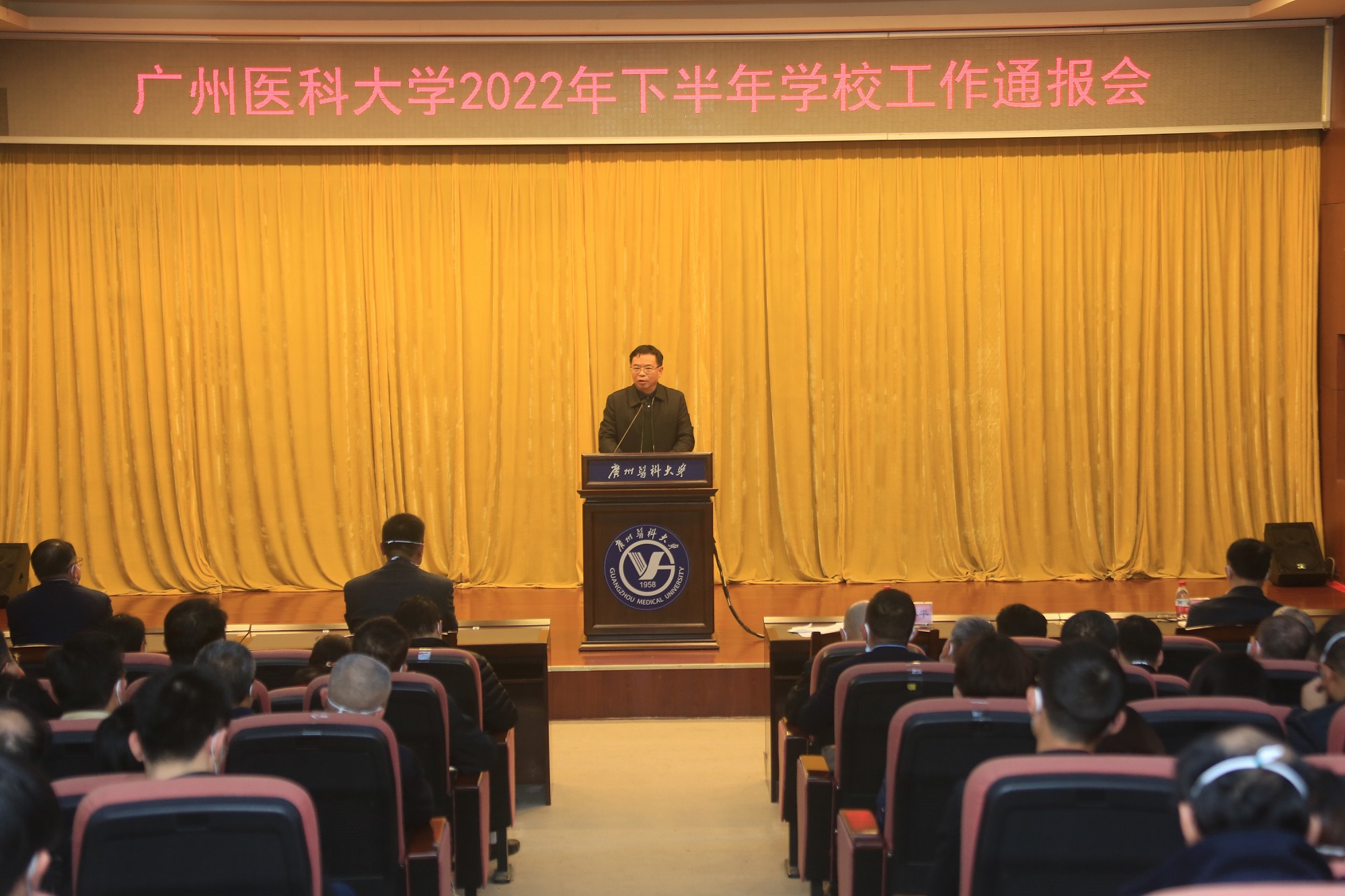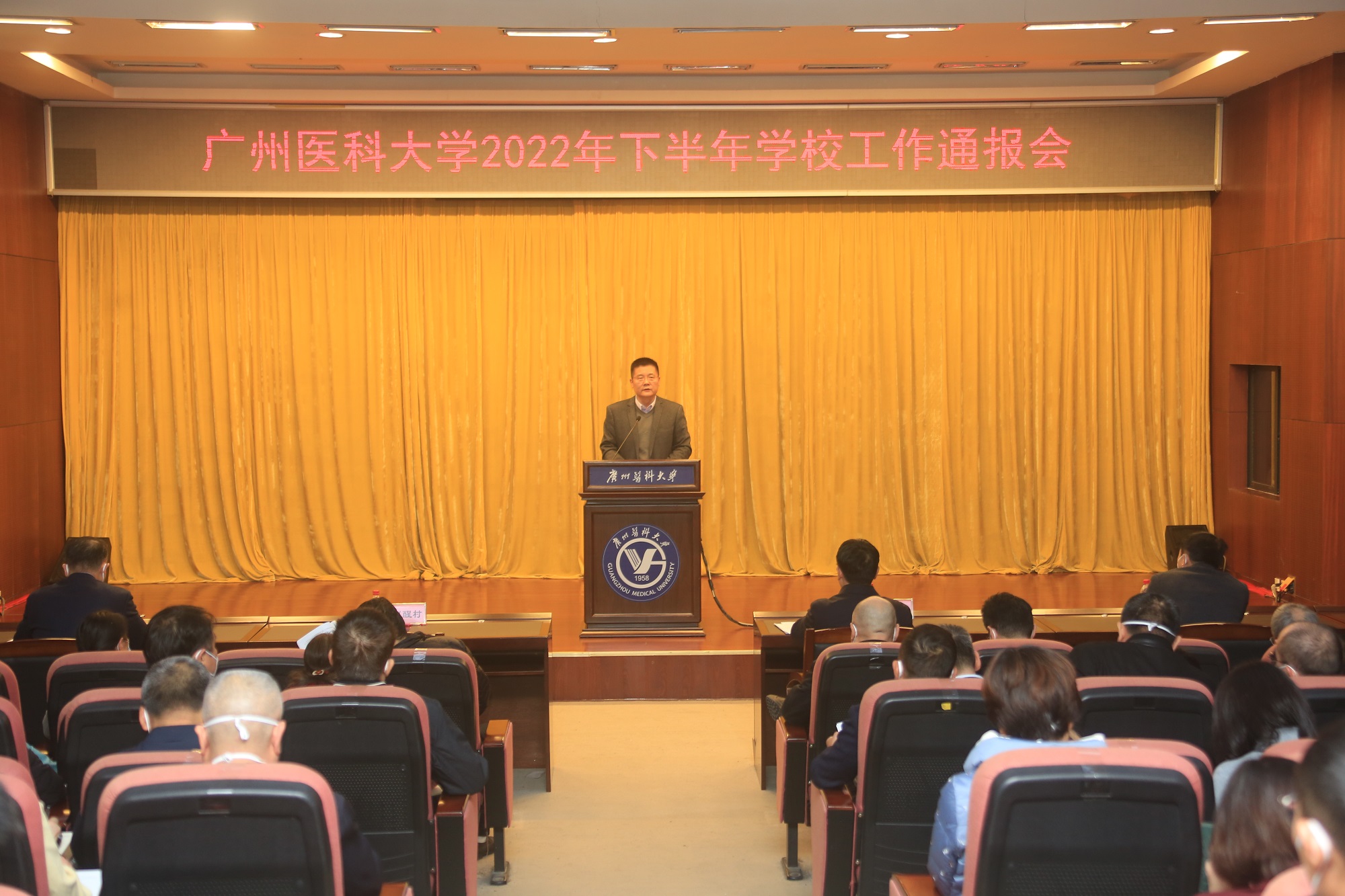本网讯 1月5日,学校2022年下半年工作通报会于番禺校区召开。全体学校领导,校本部相关管理干部、副高职称及以上专业技术人员和教代会代表,各附属医院相关负责人等参加会议。会议由唐小平书记主持。