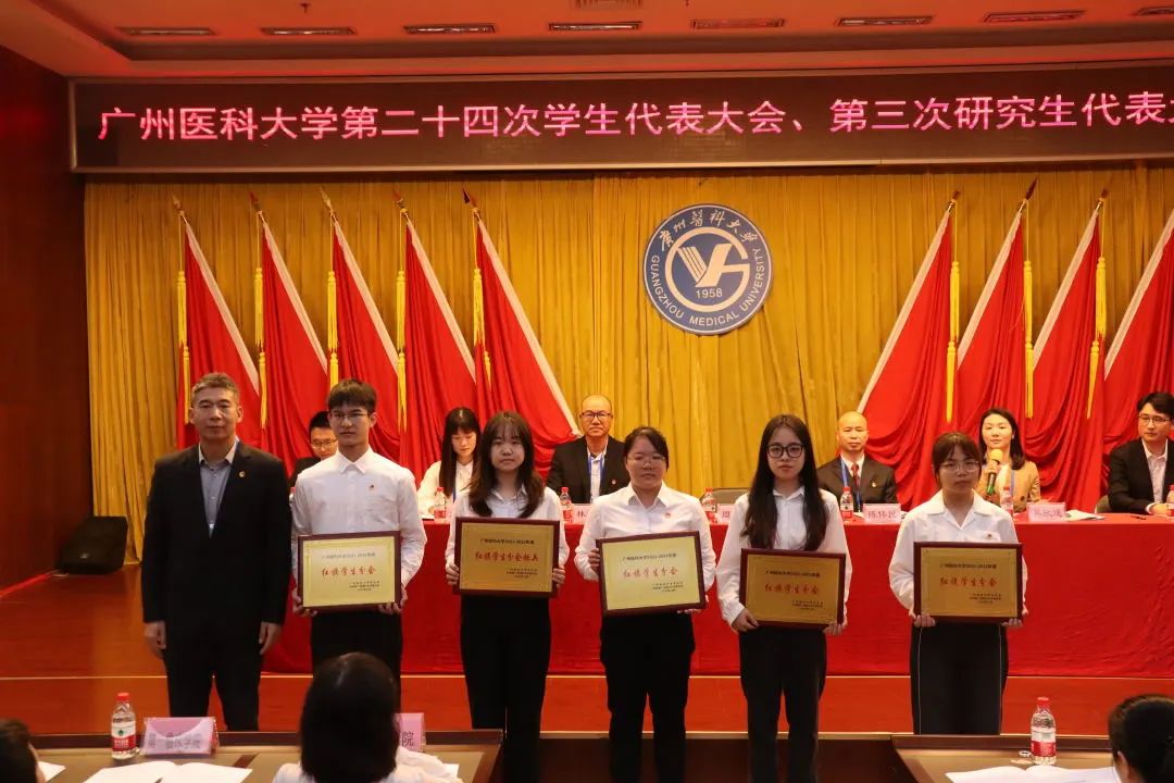 大会对广州医科大学2021-2022年度“红旗学生分会”及“优秀学生干部”代表进行了表彰。