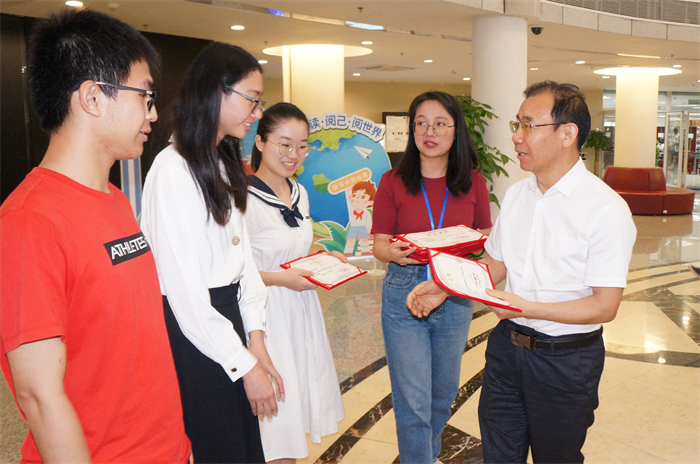 仪式上,图书馆2022年度“阅读之星”揭晓。胡丙杰副校长为图书馆2022年度“阅读之星”颁奖。唐小平书记、胡丙杰副校长以及袁林馆长与获得“阅读之星”的师生代表一同合影留念。
