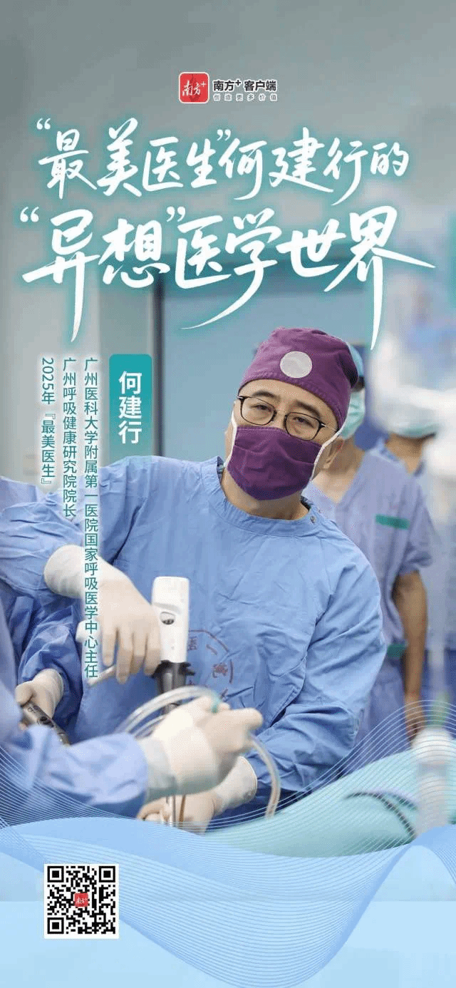 8月19日,广州医科大学附属第一医院(下称“广医一院”)国家呼吸医学中心主任、广州呼吸健康研究院院长何建行获得了国家颁发的2025年“最美医生”称号。从医40多年来,何建行作为一名外科刀客,在潮水般反对与指摘中追求创新,把“异想天开”的质疑变成了梦想成真的现实。