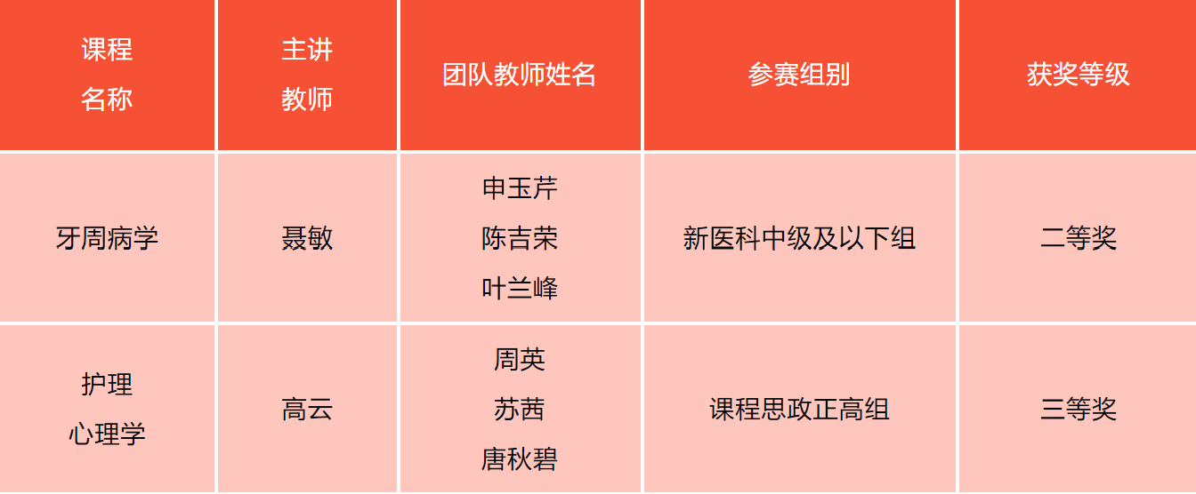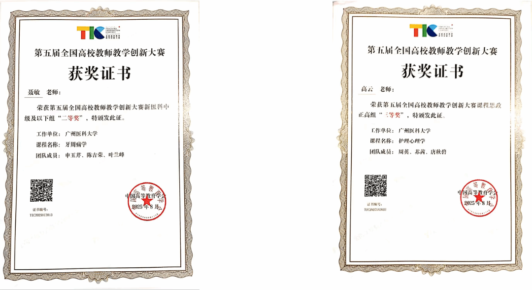 8月16日至19日,由教育部高等教育司指导、中国高等教育学会主办的第五届全国高校教师教学创新大赛在北京理工大学举办。我校代表广东赛区参赛的两个教师团队再获佳绩,口腔医学院聂敏老师团队荣获新医科赛道中级及以下组二等奖,护理学院高云教授团队荣获课程思政赛道正高组三等奖。