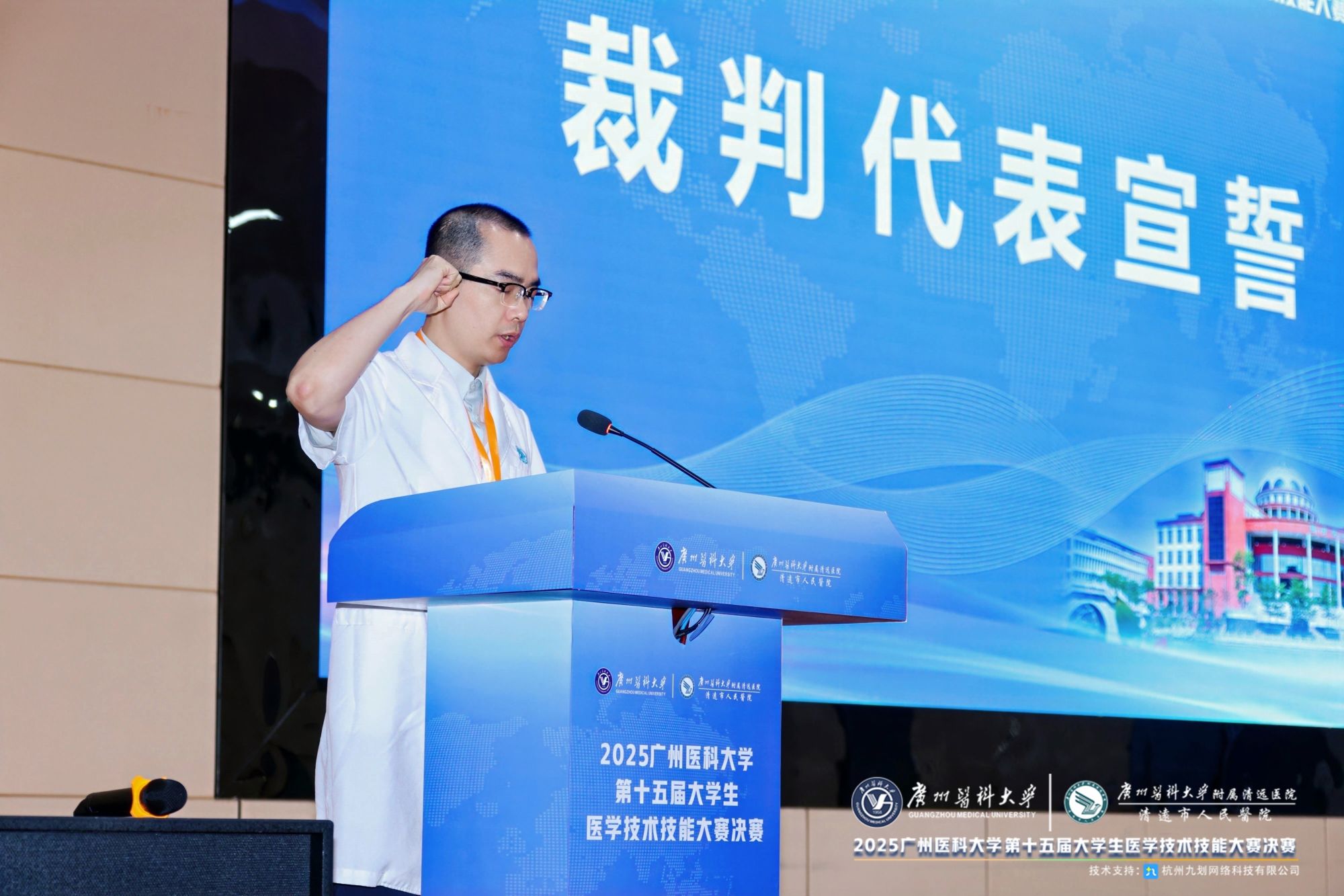 开幕式上,大赛副裁判长肖强和第六临床学院代表队叶晨乐分别代表裁判、参赛选手宣誓。