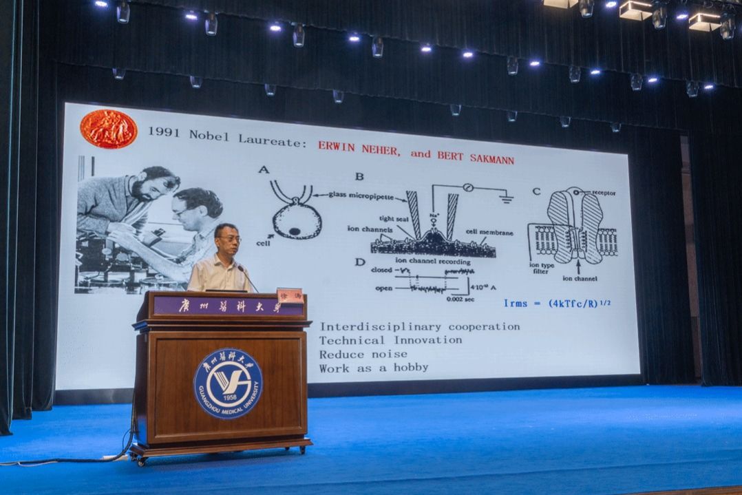 9月15日,广医南山学堂之院士讲座开讲,中国科学院院士、广州国家实验室副主任徐涛作客广医,为我校师生带来了一场题为“技术创新助力生物医学发展”的精彩讲座。讲座中,徐涛院士系统阐述生物成像技术与生物医学装备的跨越式发展,分享技术创新与数据驱动对生物医学领域的深刻影响,并勉励广医学子志存高远、脚踏实地,积极投身创新实践,把个人的梦想与国家的发展相结合,为建设科技强国贡献青春力量。