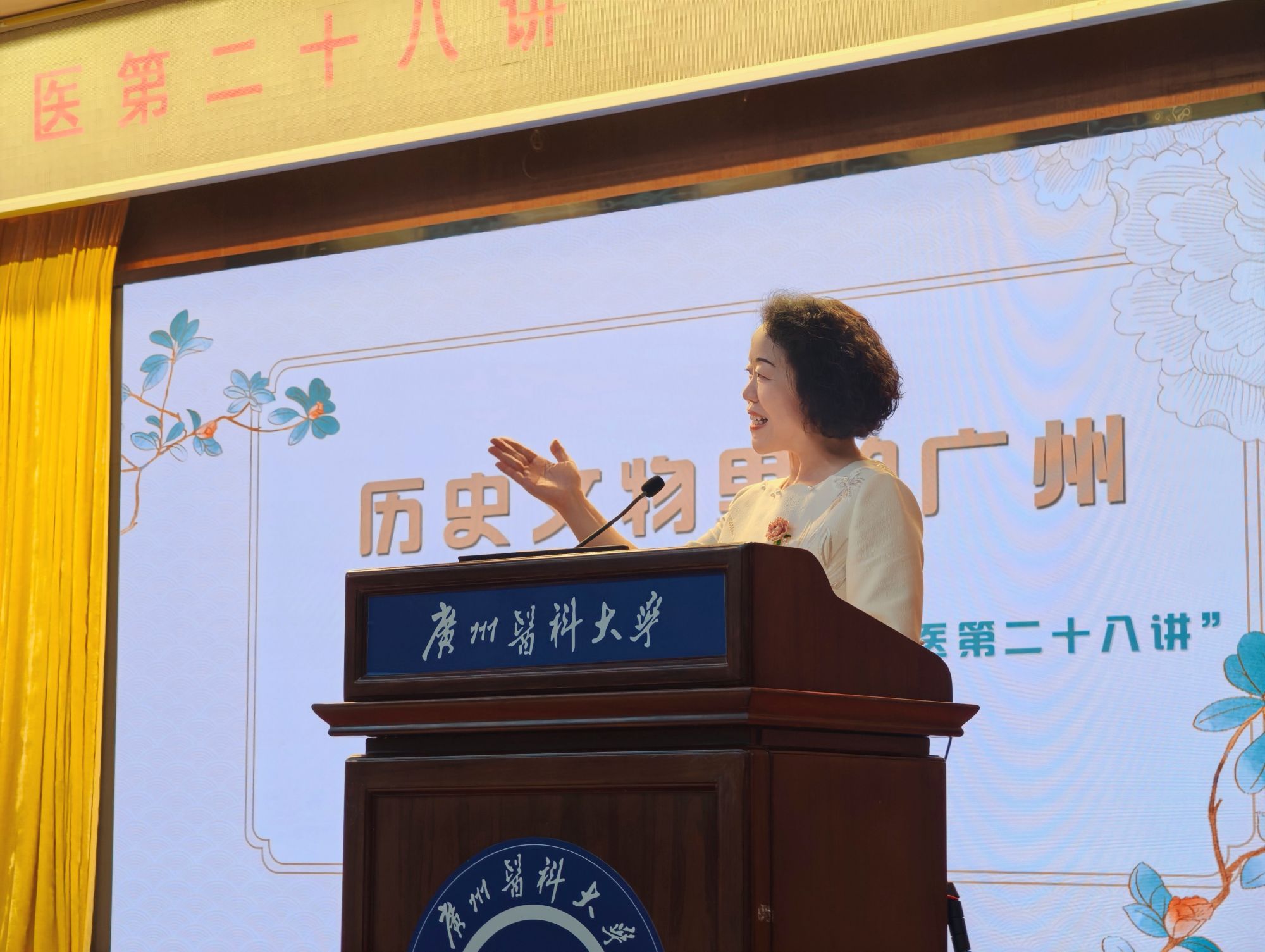 10月16日晚,书香广医第二十八讲——“历史文物里的广州”主题讲座于番禺校区举办。广州博物馆馆长吴凌云受邀担任主讲嘉宾。学校党委书记曾颖如,相关部门负责人和师生代表共500余名师生参加讲座。图书馆馆长袁林主持讲座。