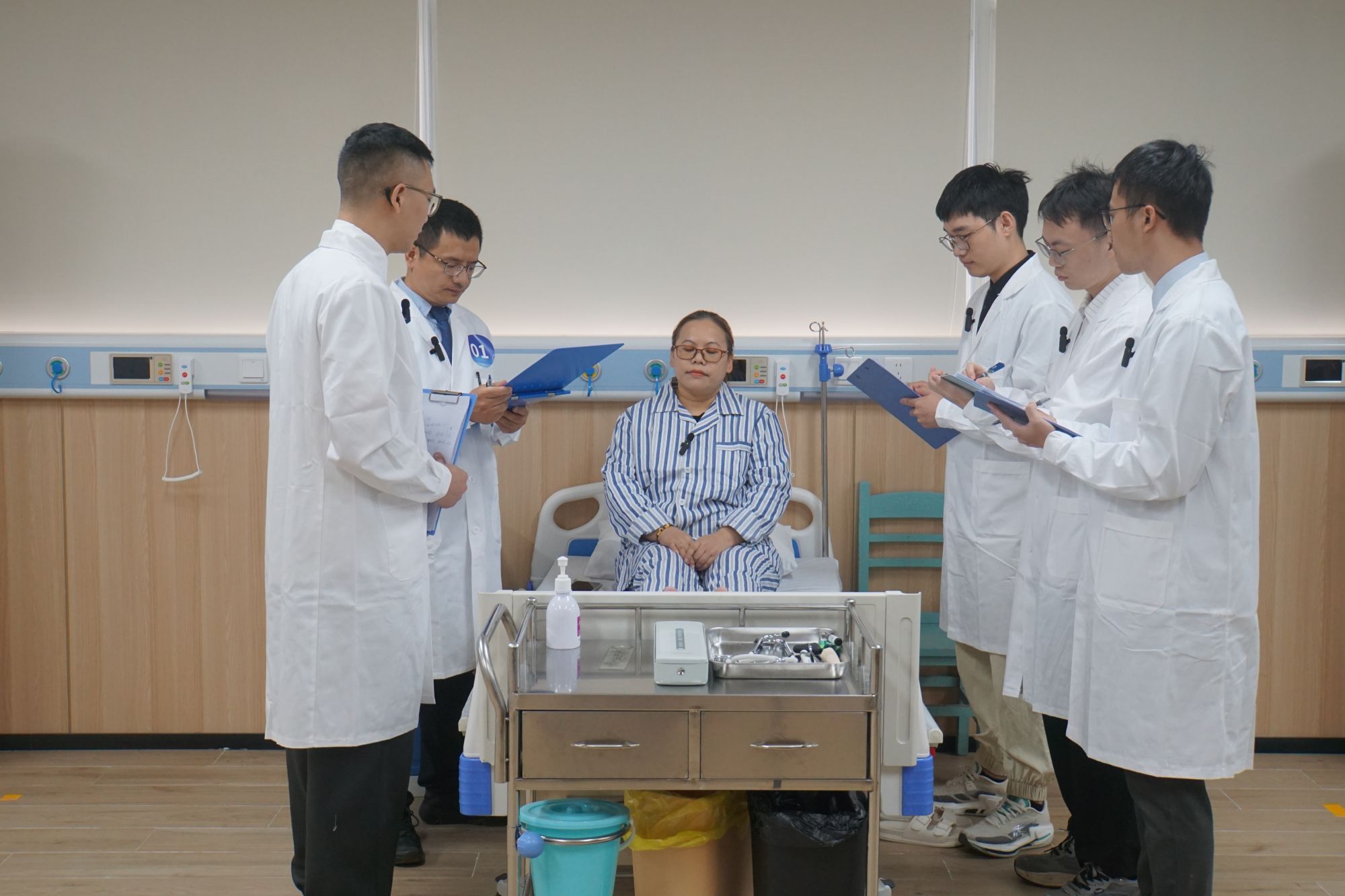 决赛现场,各参赛团队完整呈现教学查房全流程,聚焦重点、凸显亮点。从查房准备、病例汇报、四诊查体到病例讨论,团队通过各环节明确教学查房目标,围绕具体病例展开深度讨论学习。