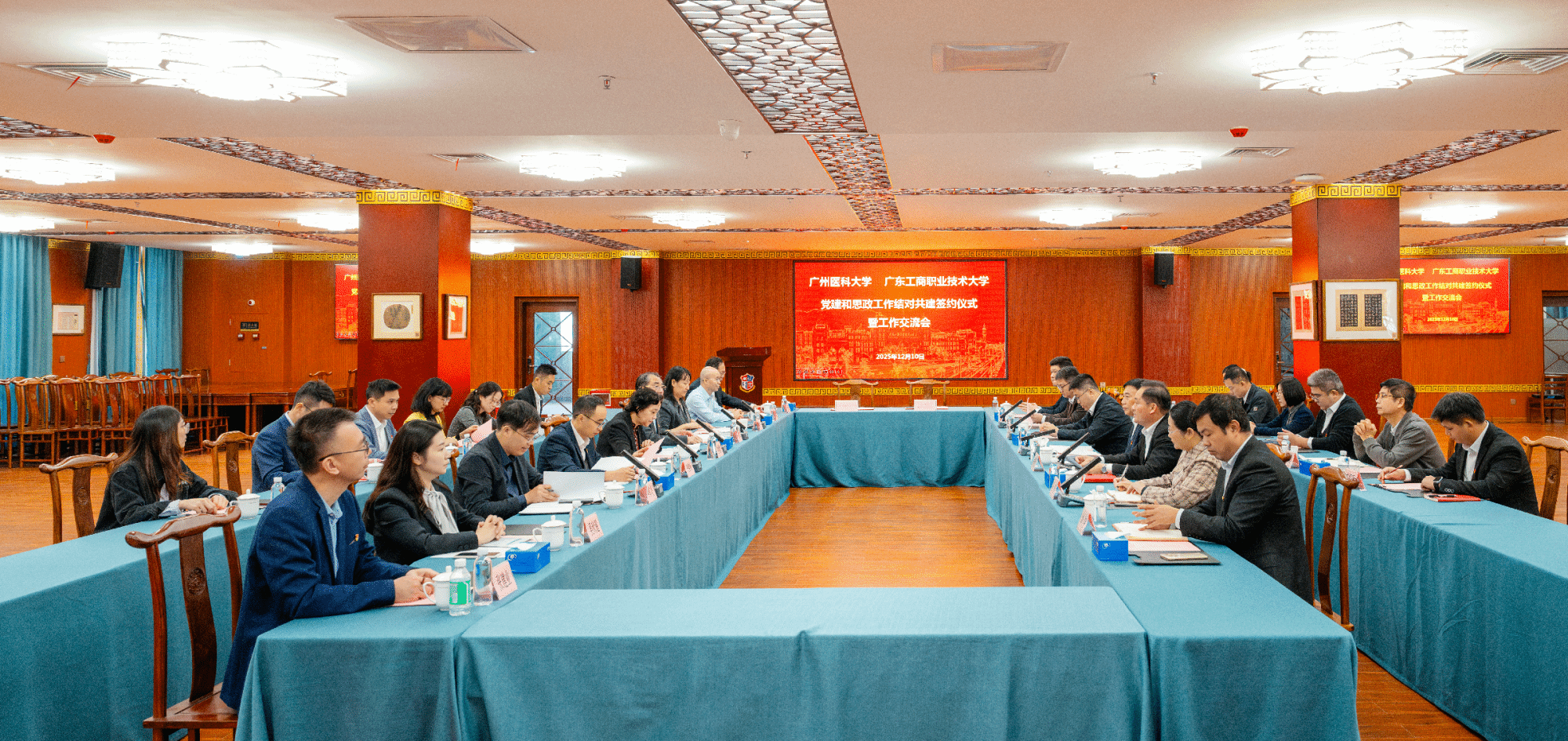 为深入贯彻习近平总书记关于加强党的建设的重要思想,全面落实全国教育大会精神和第28次全国高校党的建设工作会议精神,根据省委教育工委有关部署要求,中共广州医科大学委员会和中共广东工商职业技术大学委员会开展党建和思政工作结对共建,构建资源共享、优势互补、协同发展的长效合作机制,实现双方组织建设互促、思政教育互融、队伍能力互提、发展质量共赢。