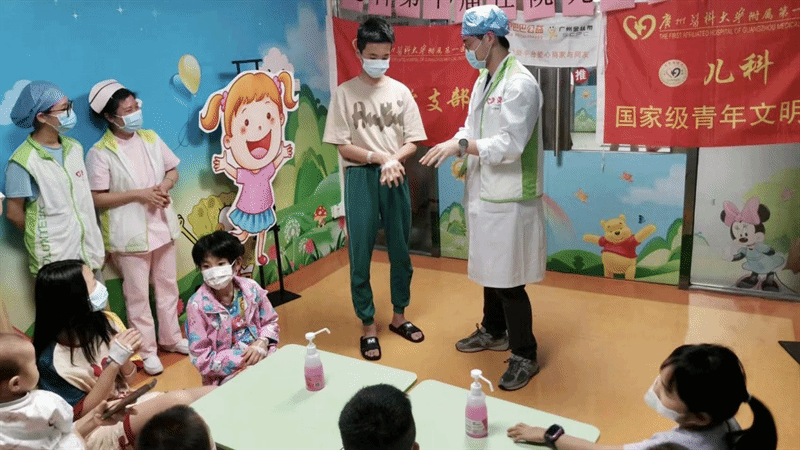 张予卓作为志愿者到广医一院儿科探访活动小朋友
