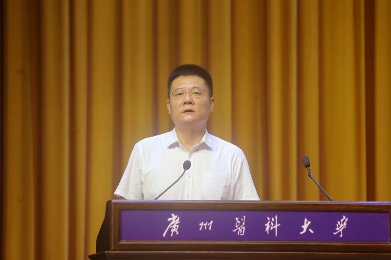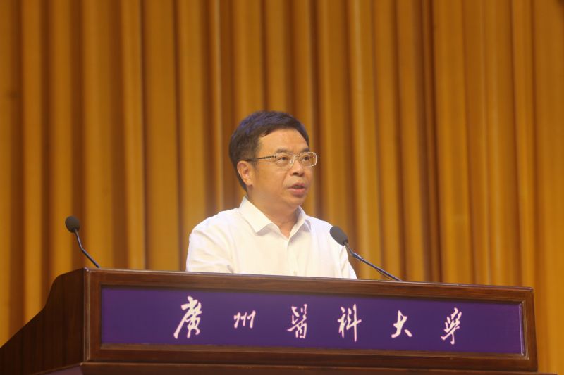 校长赵醒村代表学校祝贺新同学来到广州医科大学启航人生新征程。在讲话中,他带领新生走进广医这所“双一流”建设高校,了解她的动人故事和精彩历史。