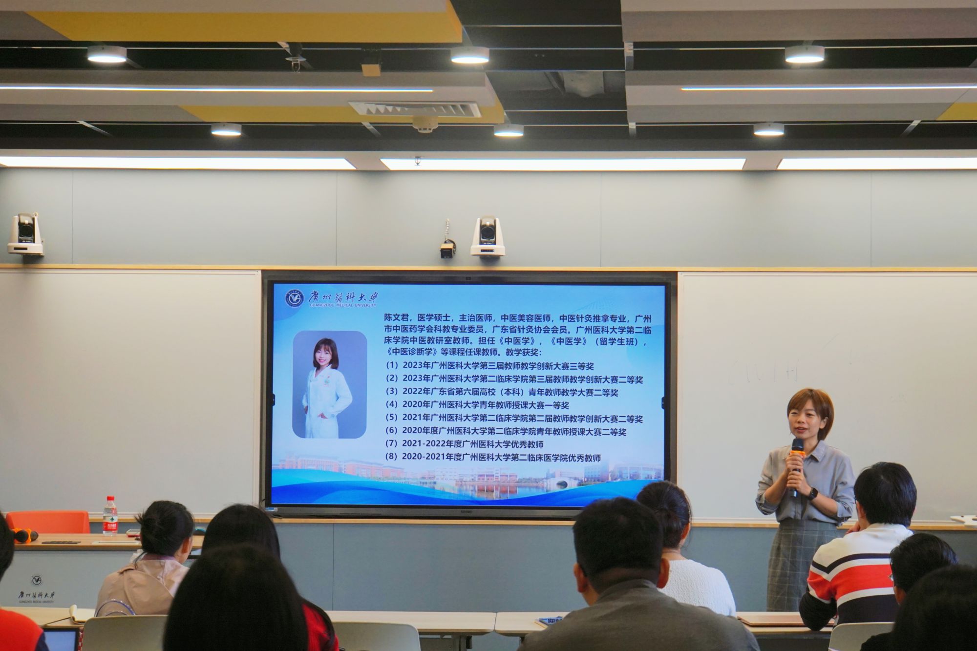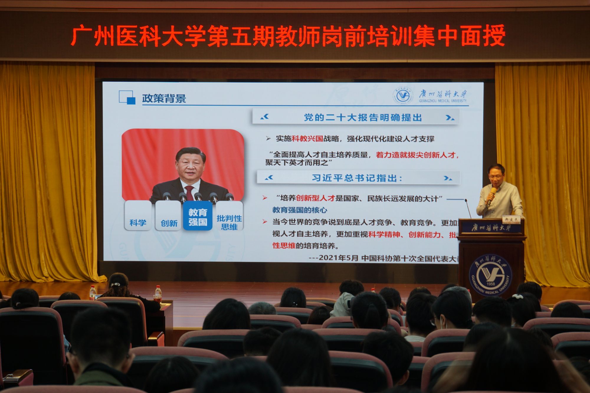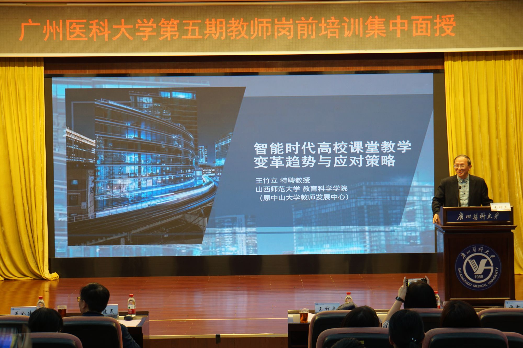 上午,教发中心吴他凡主任作题为“新时代医学院校教师教学发展促进的广医探索”的授课,她从教师教学成长与发展背景、新时代教师专业发展要求、教师发展支持与培养体系、教师成长与发展实践成效四个方面进行了详细介绍。随后,王竹立教授作题为“智能时代高校课堂教学变革趋势与应对策略”的主旨授课。他讲解了在智能时代来临的大前提下知识与学习的变化趋势、高校课堂教学的变革趋势并在此基础上提出高校青年教师的应对策略。他指出在数智时代,知识的定义已经不仅仅局限在人类身上,学习模式已经发生了重大变化,更多是智能时代的人-机合作式学习。药学院刘英华教授结合《药理学》课程,从课程思政相关政策概况、课程思政设计和课程思政案例三个方面论述了课程思政的设计与实践。