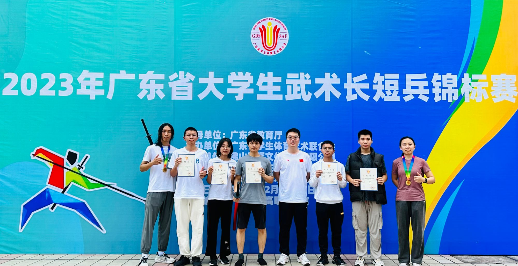 本网讯 12月8日至10日,广东省大学生武术长短兵锦标赛在佛山市举行。我校长短兵队首次参加此项目比赛,由李然老师担任主教练,共派出男、女共7名队员参赛。经过两天的激烈角逐,我校代表队成绩优异。其中, 口腔医学院黄冠韬同学获得男子甲组短兵67kg级亚军;第一临床学院同学刘美君获得女子甲组长兵64kg级季军;卫生管理学院戴利国同学获得男子甲组长兵67kg级第五名;儿科学院李豪城同学获得男子甲组短兵62kg级第五名,生物医学工程学院林子新同学获得男子甲组长兵78kg级第五名。