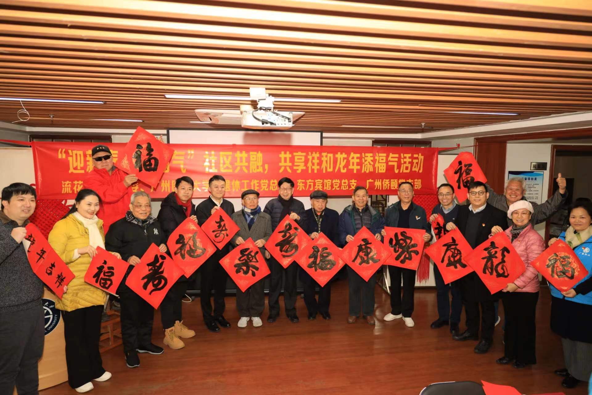 本网讯 在龙年春节来临之际,为了营造喜庆温暖、文明祥和的节日气氛,传承中华优秀传统文化,1月25日上午,广州医科大学离退休工作党总支联合流花湖社区党委、岭南控股党委、东方宾馆党总支、六榕街东区社工站在广州医科大学老干部活动中心开展了“迎新春、纳福气”写福字活动,以及爱心理发、血压血氧测量等迎新惠民活动,提前为学校老同志及社区居民送上新春暖心“礼包”。