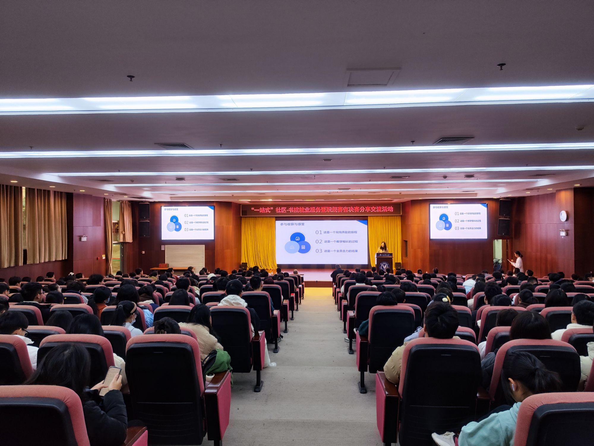 本网讯 为进一步发挥榜样引领作用,带动更多师生开展好生涯教育,并争取在下一届职规赛中取得更好成绩,3月2日上午,学校在图书馆报告厅举办“榜样力量,‘职’击未来”——一站式社区-书院就业服务暨职规赛省决赛分享交流活动。我校副校长周麟、广东工业大学分析测试中心教育分室主任陈雨婷,我校学生工作处、教务处、学院相关负责人,全体辅导员和学生代表近400人参加了本次活动。