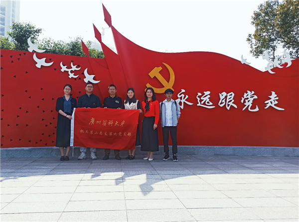 活动中,支部全体成员参观了海珠区党建公园,公园春意盎然,鲜艳的党旗雕塑和红色文化墙在绿树掩映下熠熠生辉,共有四个主题红色空间,分别为“使命担当”“百年党史”“中国精神”和“新时代、新征程”。党员们认真回顾了中国共产党的百年历程,进一步体悟了共产党人的初心和使命。