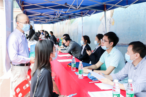 广医在线讯 4月9日,由广州市人力资源和社会保障局主办、我校承办的医学卫生类专场招聘会在越秀校区田径场举办。共210家企事业单位参会,其中包括国药控股广州有限公司、广州白云山医药集团股份有限公司白云山制药总厂、中山大学达安基因股份有限公司、广州金域医学检验中心、广州医科大学及其附属医院等企事业单位,合计提供岗位数超过9000个,涉及医学、药学、生物、管理学等多个学科,招聘会气氛热烈且有序。
