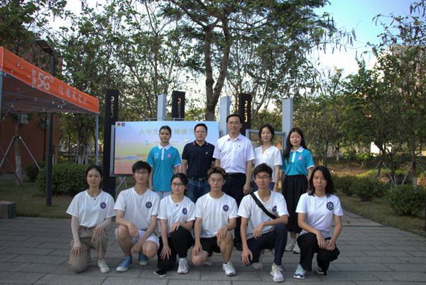 学校团委老师在大学生心理健康节特设摊位与学生会工作人员合影