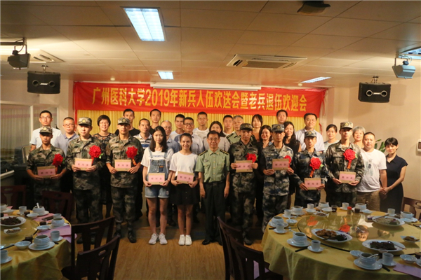 广医在线讯 9月9日中午,我校2019年入伍学生欢送会暨退伍学生欢迎会在番禺校区召开。副校长胡丙杰,学校武装部、办公室、学生处、教务处、财务处、后勤校产管理处、校团委、宣传部等有关负责人以及入伍学生所在学院分管领导、辅导员、家长代表及2019年入伍、退伍复学学生等共计40余人参加了会议。会议由武装部部长李健主持。