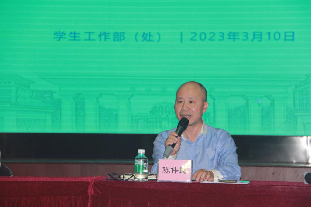 陈伟民部(处)长在会议上分析了近期学生工作形势,并对各学院提出的学生教育和管理问题作出了回应。