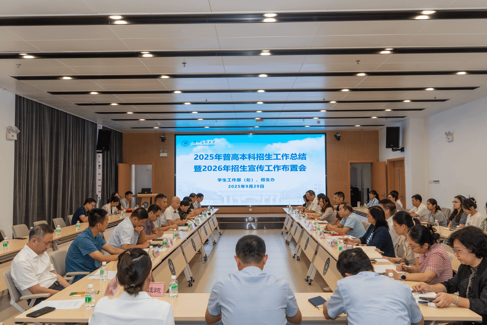 9月29日下午,我校召开2025年普高本科招生工作总结暨2026年招生宣传工作布置会。副校长周麟、学生工作处(招生办)、纪检监察室、宣传部、教务处、信息与数据管理中心、各学院等单位负责人和老师,本科各专业负责人和全体辅导员共92人参加了会议。会议由学生工作处处长、招生办主任陈伟民主持。