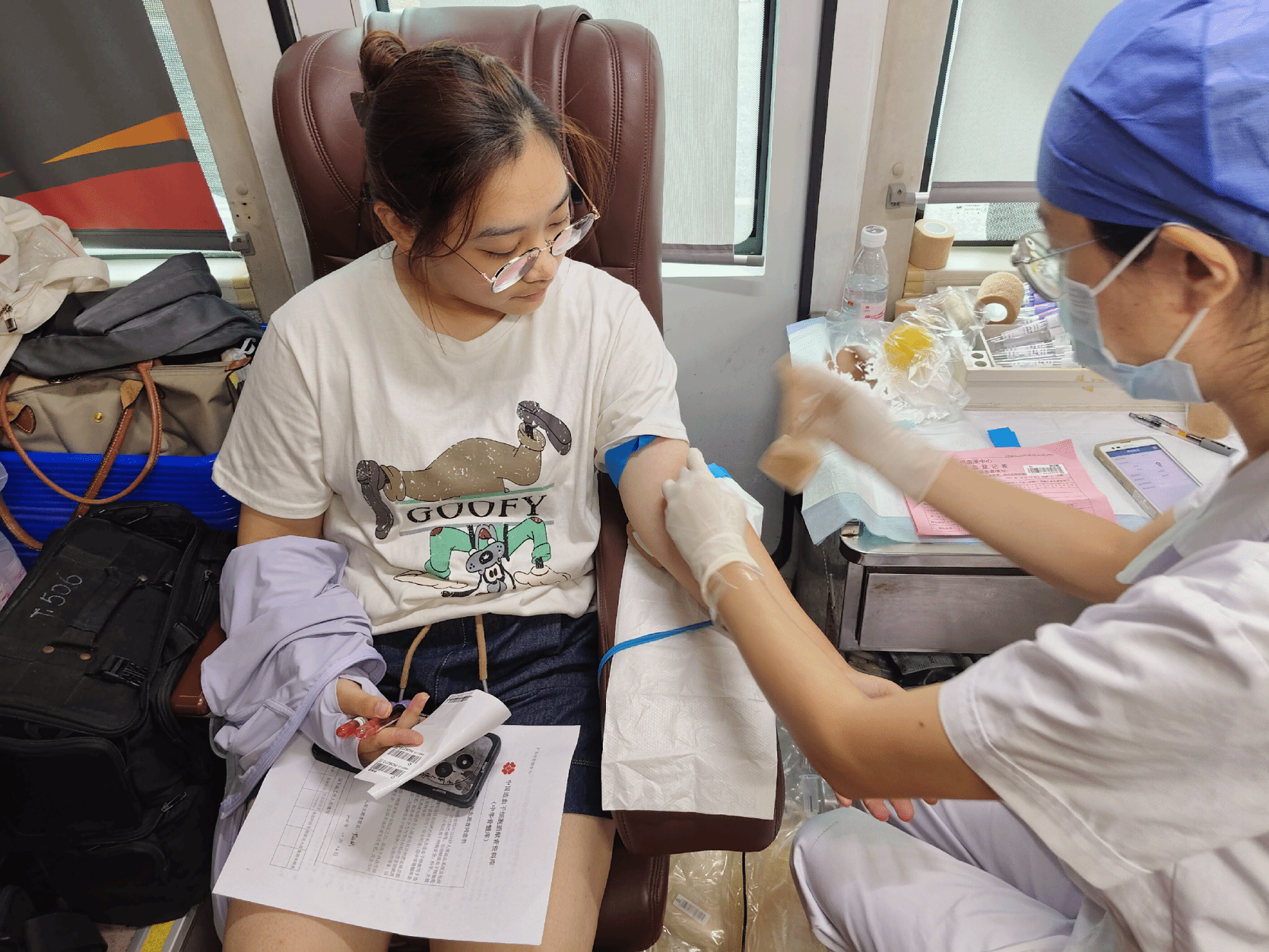 在献血现场,填表登记、体检筛查、血液采集等区域划分有序。每一个环节都有医护人员和志愿者的耐心指引与贴心服务。从清晨到黄昏,他们始终保持着微笑,为献血者指引方向和及时提供帮助。