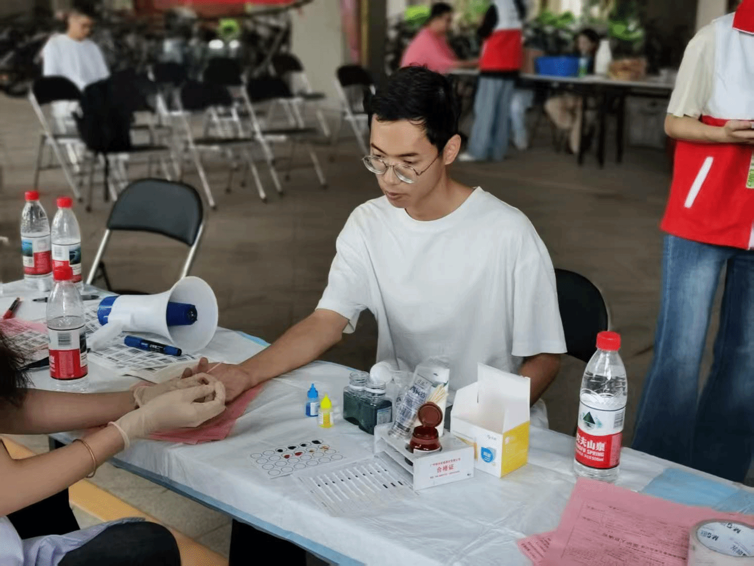 志愿者在献血现场服务