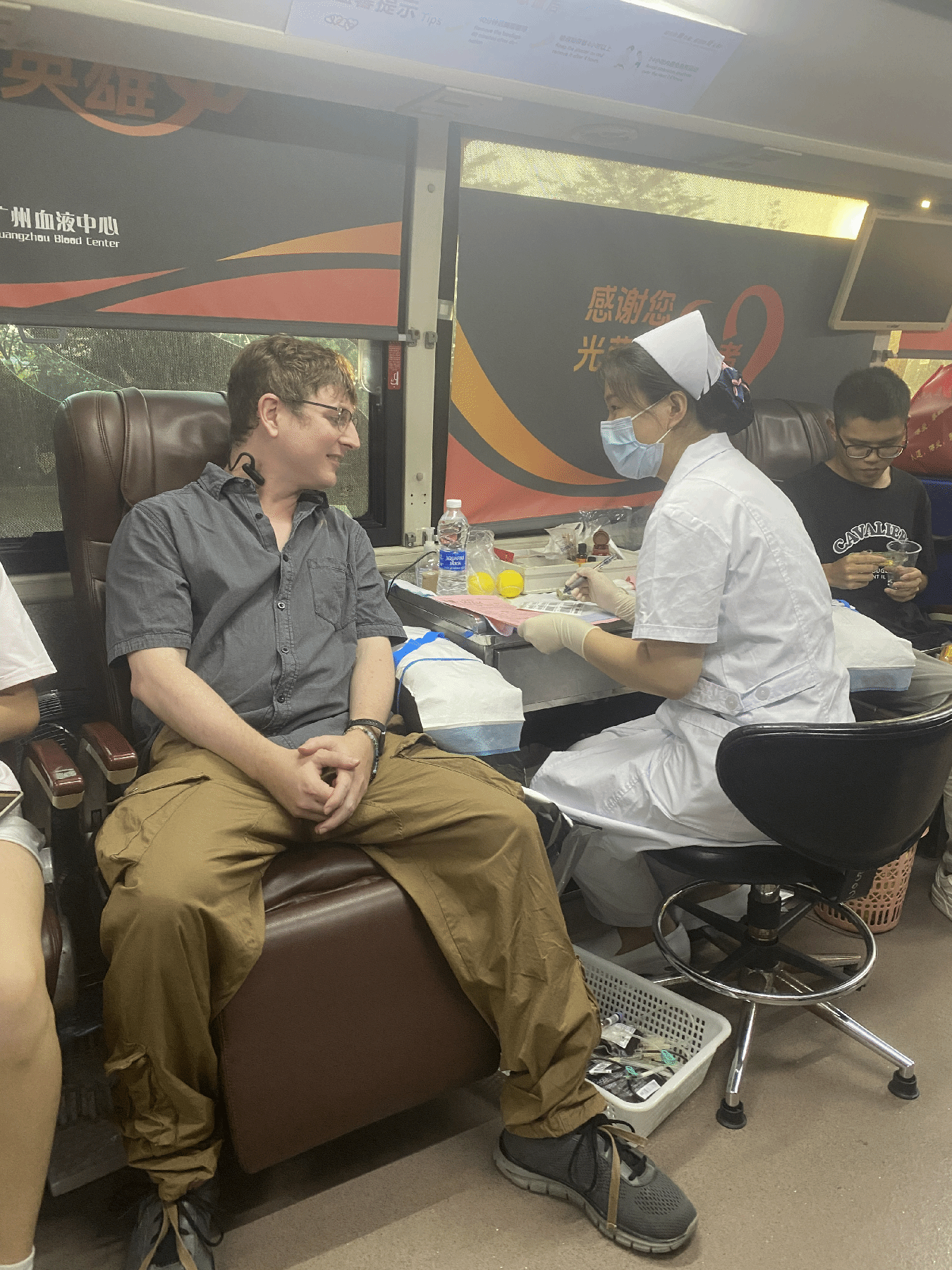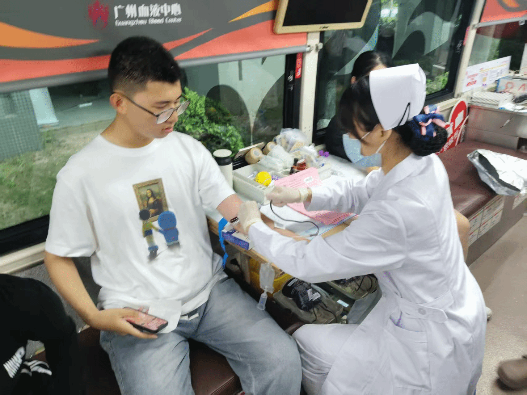 在献血队伍中,既有坚持多年献血的教职工,也有首次献血的我校新生。研究生院高睿迪老师表示:“我得知广州血库的血量告急,所以毫不犹豫踏上献血车。献血既能助人,对自己也有益处,我会一直坚持。”