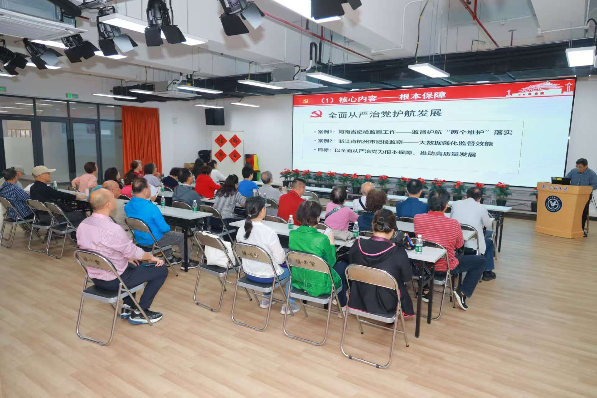 参观结束后,离退休工作党总支书记梁斯恒在学校老干部活动中心为党员们作辅导报告,带领大家共同学习党的二十届四中全会精神。他从全会的历史方位、核心内容、实践要求等多个方面进行深入解读,使党员们深刻领会了全会精神的核心要义和重大历史意义。