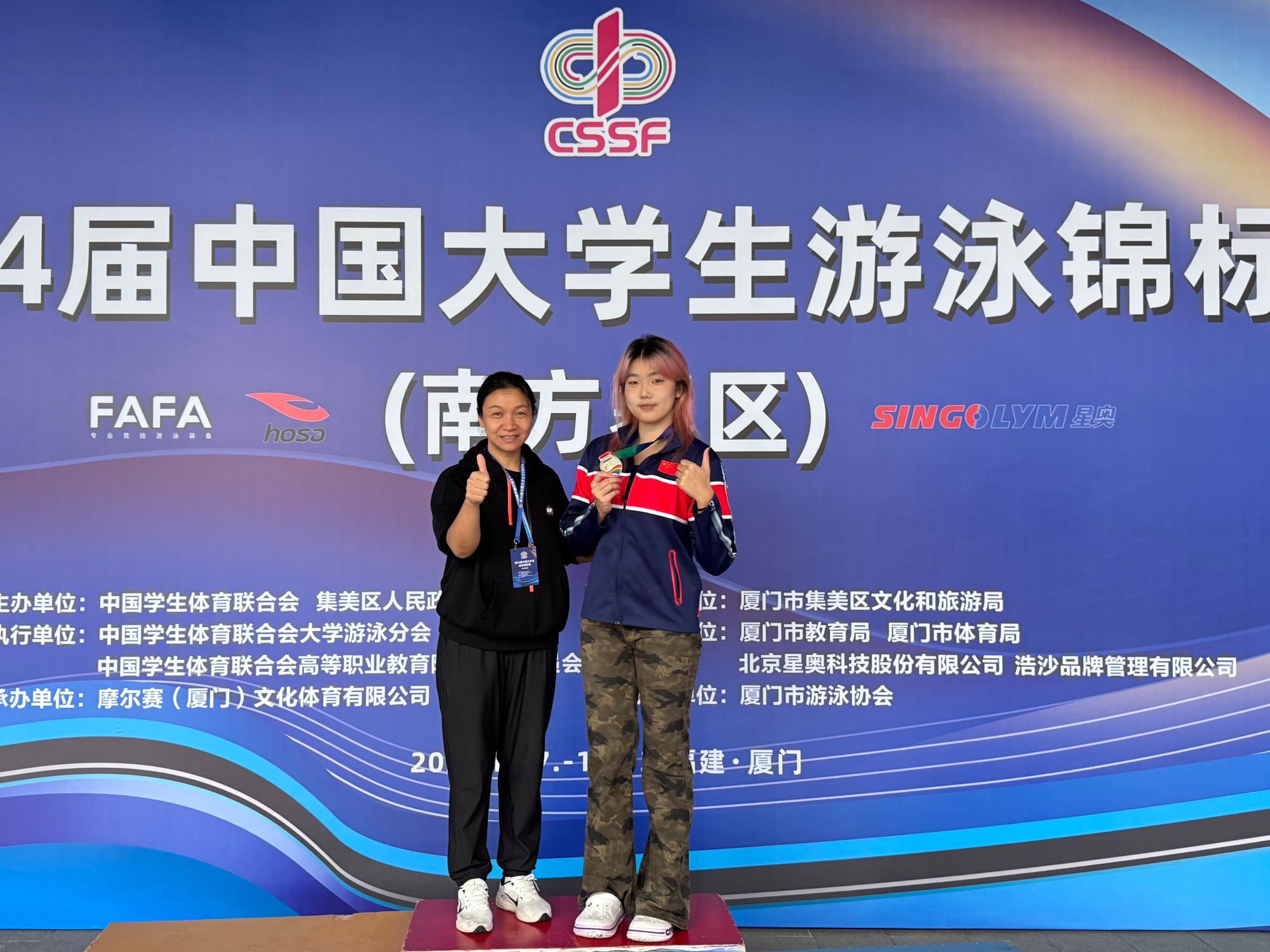 近日,在第24届中国大学生游泳锦标赛(南方赛区)中,学校游泳队王邯同学表现优异,在11月12日举行的女子400米自由泳决赛中以4分58秒96的成绩夺得银牌,实现了学校近两年来在国家级游泳赛事中奖牌数零的突破。此外,在11月9日举行的女子200米自由泳项目中,王邯也发挥出色,以2分20秒87的成绩获得第四名。