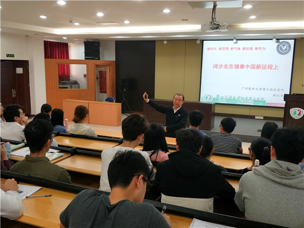 广医在线讯 近日,附三院党委书记赖永洪、院长陈德与在院实习的50名医学生分别讲授学习十九大报告的思想政治教育课程。