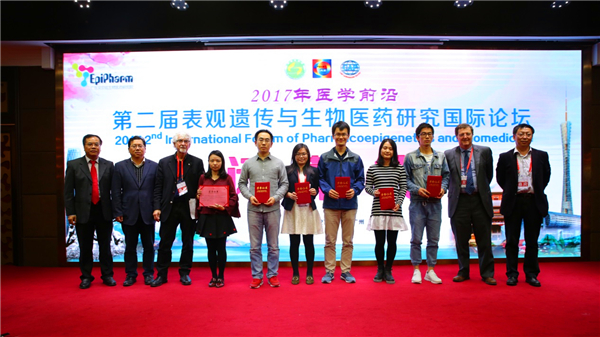 闭幕式上,大会执行主席余细勇教授进行了会议总结,强调了推动表观遗传药理学在重大慢病防治领域应用中的重要意义和交流表观遗传学的研究成果和经验对生物医药领域所产生的深远影响。同时进行了优秀壁报论文颁奖活动,由Morley D. Hollenberg教授、Peter Brown教授、以及广东省药理学会前任、现任、候任理事长为获奖青年学者颁发了证书,6位获奖者分别为邵联波、秦爱萍、江雪燕、李仕颖、覃宇燕、赵林平。