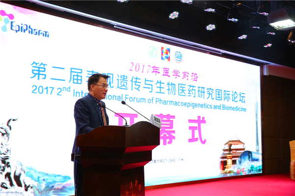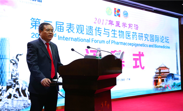 广医在线讯 11月27日上午,2017 医学前沿——第二届表观遗传药理学与生物医药研究国际论坛在羊城广州拉开了帷幕。论坛由中国工程院医药卫生学部、中国病理生理学会心血管专业委员会、广东省药理学会联合主办,我校承办,广东省分子靶标与临床药理学重点实验室、我校药学院、附属第五医院,中山大学药学院、南方医科大学药学院、广东艾贝珐生物医药研究院等单位共同协办,我校药学院院长余细勇担任大会共同执行主席。