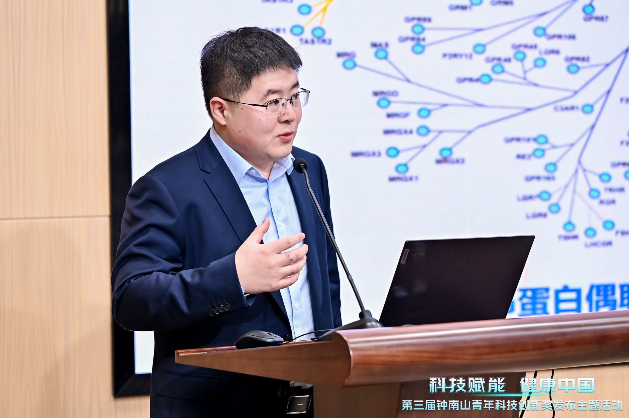 肖鹏教授以《重要药物靶点GPCR功能与药理学研究》为题做专题报告,围绕GPCR受体的识别及激活机制,配体/药物新靶点发现,GPCR的信号转导机制和基于靶点发展干预策略这四方面系统介绍了其研究团队在GPCR的研究进展和成果。