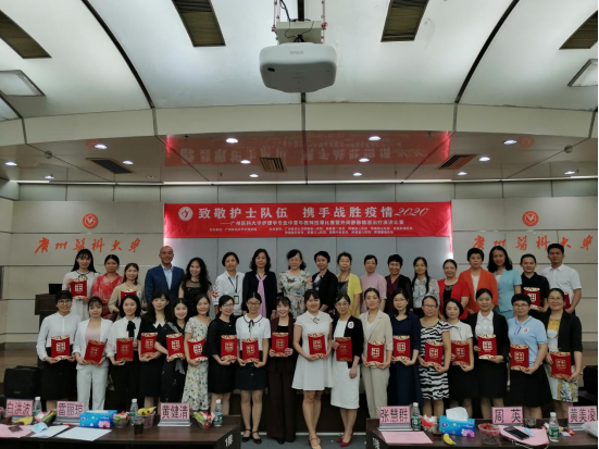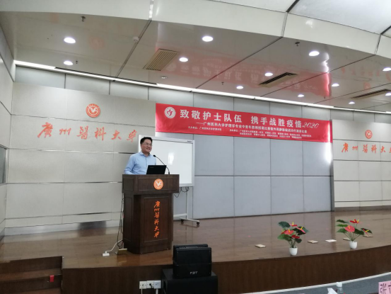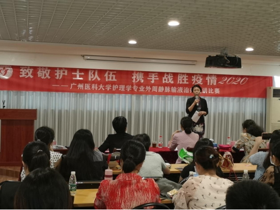 广医在线讯 为响应中华护理学会号召,提高我校护理学专业青年教师的教学能力与水平,培育更多静脉治疗领域教学专家,同时选拔优秀教师参加省赛和国赛,护理学院于5月20日下午携手10家附属医院在越秀校区举办了“致敬护士队伍、携手战胜疫情”——2020广州医科大学护理学专业中青年教师授课比赛暨外周静脉输液治疗演讲比赛。副校长黄健清,教务处、护理学院负责人,专家评委、参赛选手、观摩人员等近180人参加活动。