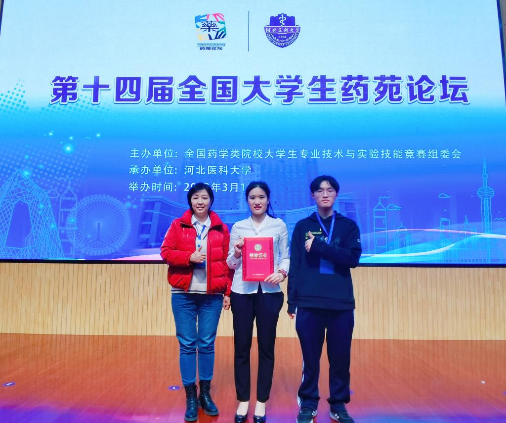 本网讯 3月18日,由国家药学教指委主办的第十四届“全国大学生药苑论坛”在河北石家庄举行。临床药学本科生何绮乐、林圳生,临床药学方向研究生陈一帆的参赛项目分别获得创新成果奖一等奖、二等奖、三等奖。同时,何绮乐、林圳生的项目分获优秀论文奖。