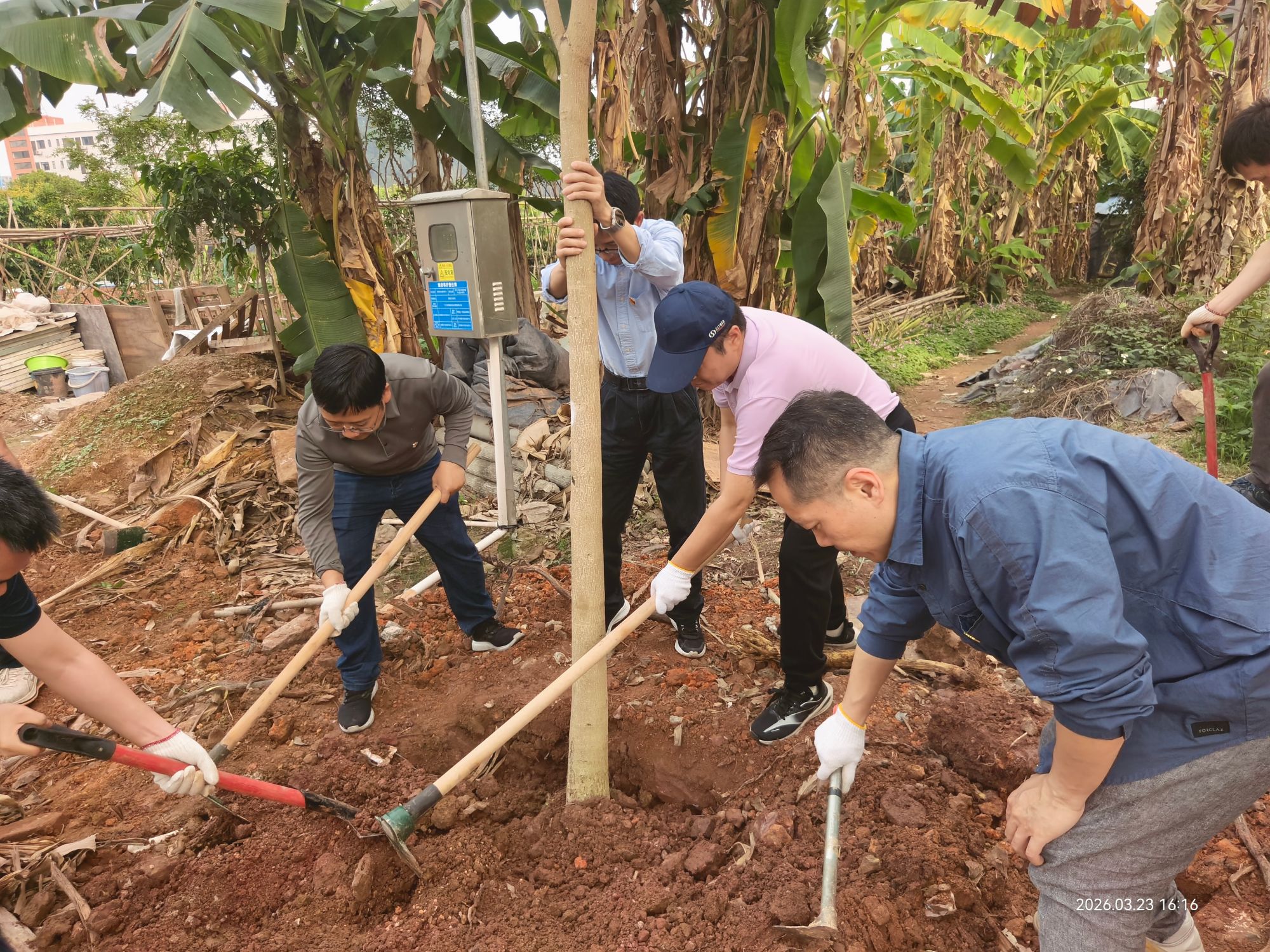 为深入践行习近平生态文明思想,以党建引领绿美广东生态建设,助力乡村振兴与“百千万工程”落地见效,3月18-23日,基础医学院党委组织两批党员和入党积极分子赴共建单位广州市番禺区新造镇秀发村、思贤村开展“携手栽新苗,党旗迎风飘”义务植树活动,共计60余人次参加。